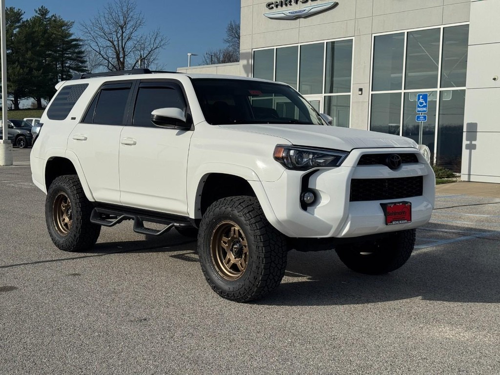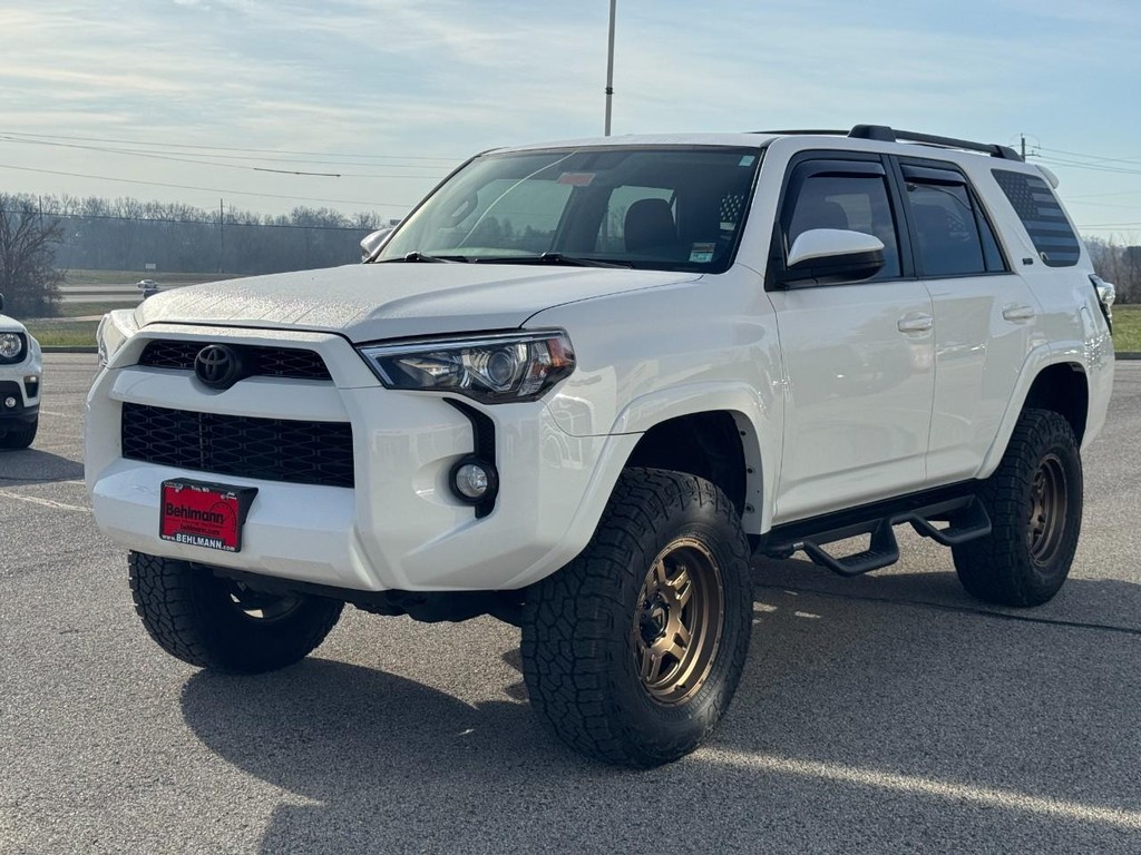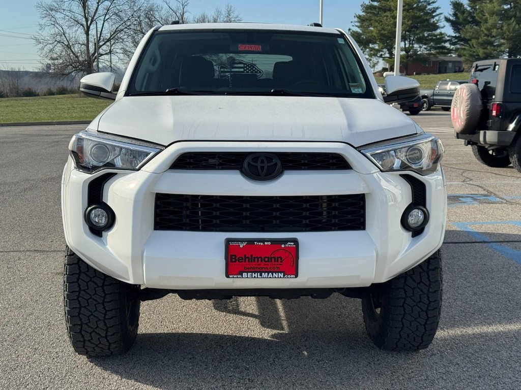 CALL (636) 775-2900 FOR MORE INFORMATION, LOCAL TRADE, BLUETOOTH, REAR BACK UP CAMERA, APPLE CARPLAY / ANDROID AUTO, NAVIGATION / NAV / GPS, CRUISE CONTROL, AWD / 4 WHEEL DRIVE, ALLOY WHEELS, 4Runner SR5, 4D Sport Utility, 4.0L V6 SMPI DOHC, 5-Speed Automatic with Overdrive, 4WD, Super White, Graphite Cloth. 4Runner SR5, 4D Sport Utility, 4.0L V6 SMPI DOHC, 5-Speed Automatic with Overdrive, 4WD, Super White, Graphite Cloth, 17" x 7.0" 6-Spoke Alloy Wheels, 3.727 Axle Ratio, 4-Wheel Disc Brakes, 8 Speakers, ABS brakes, Air Conditioning, Alloy wheels, AM/FM radio: SiriusXM, Anti-whiplash front head restraints, Brake assist, Bumpers: body-color, CD player, Driver door bin, Driver vanity mirror, Dual front impact airbags, Dual front side impact airbags, Electronic Stability Control, Emergency communication system: Safety Connect, Exterior Parking Camera Rear, Front anti-roll bar, Front Bucket Seats, Front Center Armrest, Front fog lights, Front reading lights, Front wheel independent suspension, Heated door mirrors, Illuminated entry, Knee airbag, Leather Shift Knob, Leather steering wheel, Low Fabric Seat Trim, Low tire pressure warning, Occupant sensing airbag, Outside temperature display, Overhead airbag, Overhead console, Panic alarm, Passenger door bin, Passenger vanity mirror, Power door mirrors, Power driver seat, Power steering, Power windows, Radio: Entune Audio Plus, Rear anti-roll bar, Rear seat center armrest, Rear window defroster, Rear window wiper, Remote keyless entry, Roof rack: rails only, Security system, Speed control, Speed-sensing steering, Split folding rear seat, Spoiler, Steering wheel mounted audio controls, Tachometer, Telescoping steering wheel, Tilt steering wheel, Traction control, Trip computer, and Variably intermittent wipers. Odometer is 997 miles below market average! Third Party sources are involved in the posting of incentives and sale prices. See salesperson for details and verification.