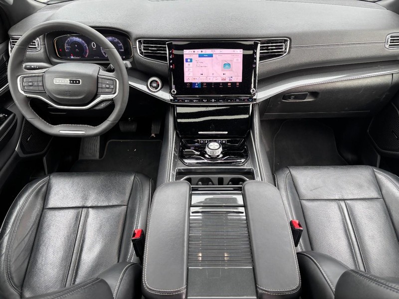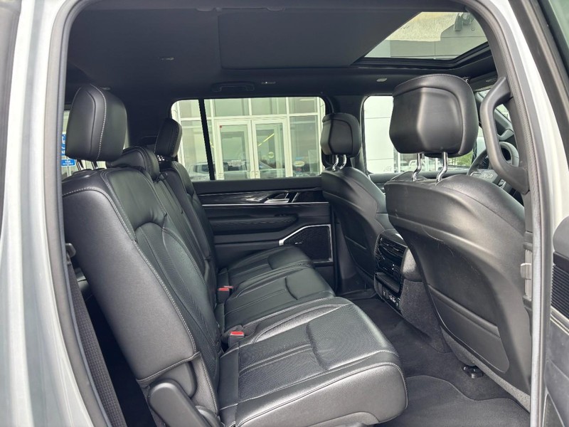 CALL (636) 775-2900 FOR MORE INFORMATION, ONE OWNER, CLEAN VEHICLE HISTORY NO ACCIDENTS, 3RD ROW SEVEN PASSENGER, BLUETOOTH, REAR BACK UP CAMERA, REAR PARKING SENSORS, APPLE CARPLAY / ANDROID AUTO, NAVIGATION / NAV / GPS, HEATED LEATHER SEATS, COOLED SEATS, HEATED STEERING WHEEL, CRUISE CONTROL, AWD / 4 WHEEL DRIVE, POWER REAR LIFTGATE, REMOTE VEHICLE START, ALLOY WHEELS, SIDE BLIND ZONE ALERT, Wagoneer Series I, 4D Sport Utility, 5.7L V8, 8-Speed Automatic, 4WD, Silver Zynith, Black Leather, 3 Panel Sunroof, Adjustable Roof Rail Crossbars, Bridgestone Brand Tires, Cargo Cover, Navigation System, Premium Group I (DISC), Quick Order Package 22E, Reversible Carpet/Vinyl Cargo Mat, Wheels: 20" x 9.0" Aluminum Base Finish (DISC). Premium Group I (DISC) (3 Panel Sunroof, Adjustable Roof Rail Crossbars, Bridgestone Brand Tires, Cargo Cover, Reversible Carpet/Vinyl Cargo Mat, and Wheels: 20" x 9.0" Aluminum Base Finish (DISC)), Quick Order Package 22E, Wagoneer Series I, 4D Sport Utility, 5.7L V8, 8-Speed Automatic, 4WD, Silver Zynith, Black Leather, Navigation System, 10 Speakers, 3.21 Rear Axle Ratio, 3rd row seats: bench, 4-Wheel Disc Brakes, ABS brakes, Adjustable pedals, Air Conditioning, Alloy wheels, AM/FM radio: SiriusXM with 360L, Anti-whiplash front head restraints, Audio memory, Auto-dimming door mirrors, Auto-dimming Rear-View mirror, Auto-leveling suspension, Automatic temperature control, Brake assist, Bumpers: body-color, Compass, Delay-off headlights, Driver door bin, Driver vanity mirror, Driver's Seat Mounted Armrest, Dual front impact airbags, Dual front side impact airbags, Electronic Stability Control, Exterior Parking Camera Rear, Four wheel independent suspension, Front anti-roll bar, Front Bucket Seats, Front Center Armrest w/Storage, Front dual zone A/C, Front fog lights, Front reading lights, Fully automatic headlights, Garage door transmitter, Heated door mirrors, Heated front seats, Heated steering wheel, Illuminated entry, Knee airbag, Leather Trimmed Bucket Seats, Low tire pressure warning, Memory seat, Normal Duty Suspension, Occupant sensing airbag, Outside temperature display, Overhead airbag, Overhead console, Panic alarm, Passenger door bin, Passenger seat mounted armrest, Passenger vanity mirror, Pedal memory, Power adjustable front head restraints, Power door mirrors, Power driver seat, Power Liftgate, Power passenger seat, Power steering, Power windows, Radio data system, Radio: Uconnect 5 Nav w/10.1" Display, Rear air conditioning, Rear anti-roll bar, Rear dual zone A/C, Rear reading lights, Rear seat center armrest, Rear window defroster, Rear window wiper, Reclining 3rd row seat, Remote keyless entry, Security system, Speed control, Speed-sensing steering, Speed-Sensitive Wipers, Split folding rear seat, Steering wheel memory, Steering wheel mounted audio controls, Tachometer, Telescoping steering wheel, Tilt steering wheel, Traction control, Trip computer, Turn signal indicator mirrors, Variably intermittent wipers, Ventilated front seats, Voltmeter, and Wheels: 18" x 8.0" Aluminum Base Finish. Odometer is 21599 miles below market average! Third Party sources are involved in the posting of incentives and sale prices. See salesperson for details and verification.